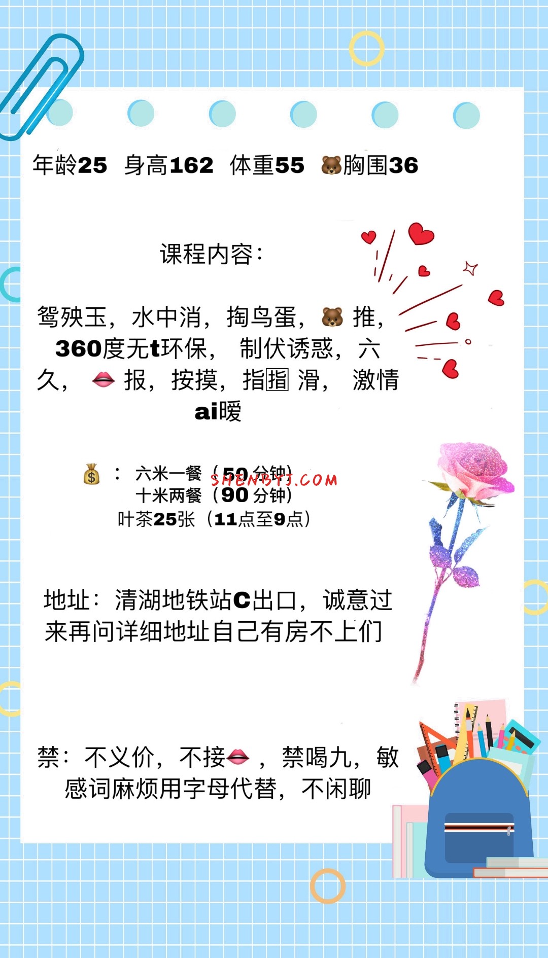 妹子素质还可以,地铁方便一些,该有的服务都有,总体来说,中规中矩吧,照片有修图,真人还是有点微胖 ...